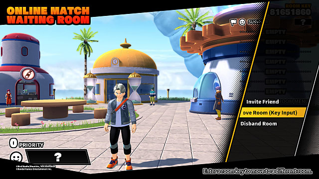 At this point you don't want to start matchmaking, but rather look in the top-right corner for the room key. There are two ways you can have a friend join you at this point, you can press R1 to bring up the Room Menu and select "Invite Friends," or you can send your friend the Room Key and they can input it into the search option.